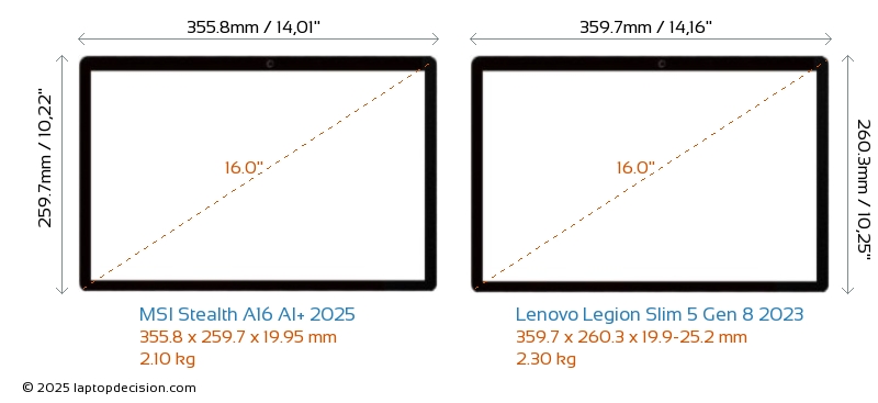 HDMIBoth Stealth A16 AI+ 2025 and Legion Slim 5 Gen 8 2023 feature an HDMI port (1x HDMI 2.1) for connecting to external monitors.