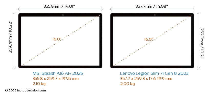 SD Card Reader Legion Slim 7i Gen 8 2023 is equipped with an SD Card Reader for easy access to memory cards. Stealth A16 AI+ 2025 does not have an SD Card Reader.