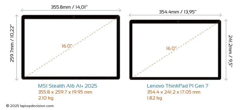 ThunderboltBoth Stealth A16 AI+ 2025 and ThinkPad P1 Gen 7 are equipped with Thunderbolt 4 ports.