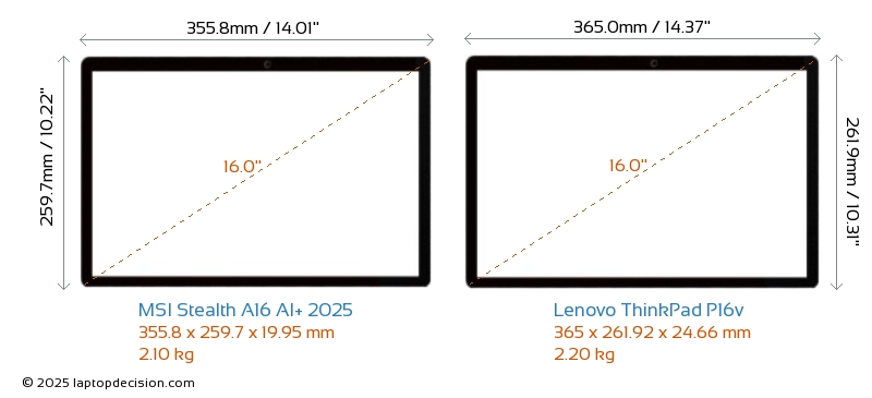 ThunderboltBoth Stealth A16 AI+ 2025 and ThinkPad P16v are equipped with Thunderbolt 4 ports.