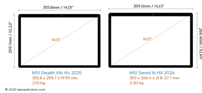 HDMIBoth Stealth A16 AI+ 2025 and Sword 16 HX 2024 feature an HDMI port (1x HDMI 2.1) for connecting to external monitors.