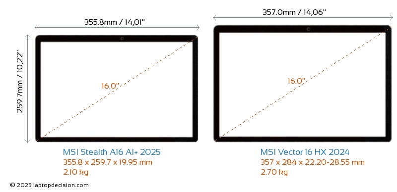 ThunderboltBoth Stealth A16 AI+ 2025 and Vector 16 HX 2024 are equipped with Thunderbolt 4 ports.