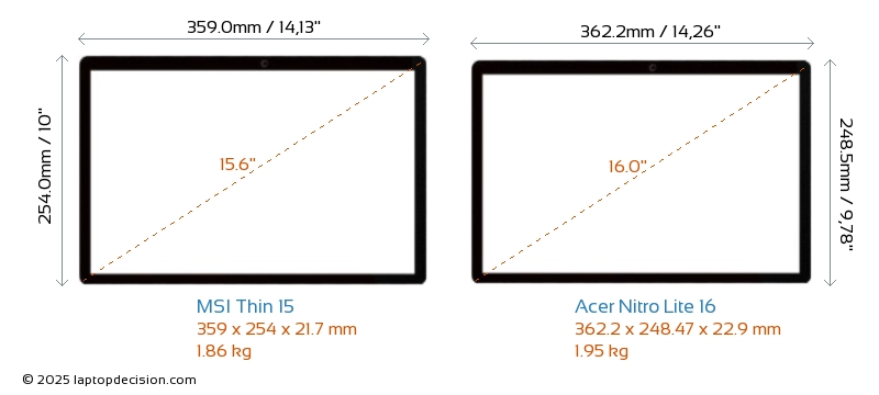 HDMIBoth Thin 15 and Nitro Lite 16 feature an HDMI port (1x HDMI 2.1) for connecting to external monitors.