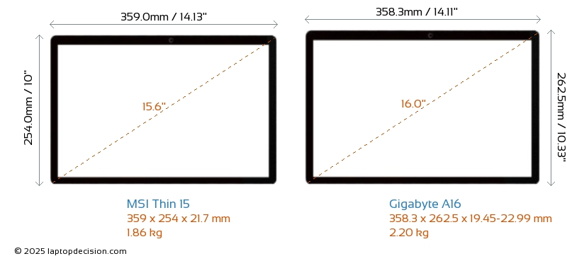 HDMIBoth Thin 15 and A16 feature an HDMI port (1x HDMI 2.1) for connecting to external monitors.
