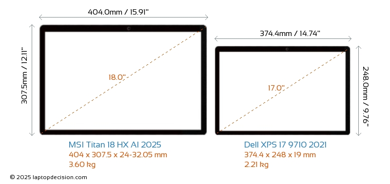HDMI Titan 18 HX AI 2025 features an HDMI port (1x HDMI 2.1) for connecting to external monitors. XPS 17 9710 2021 does not have an HDMI port.