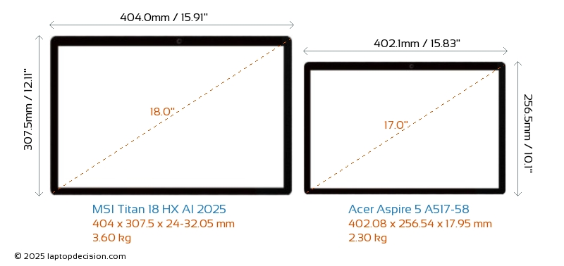 SD Card Reader Titan 18 HX AI 2025 is equipped with an SD Card Reader for easy access to memory cards. Aspire 5 A517-58 does not have an SD Card Reader.