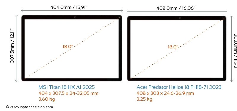 HDMIBoth Titan 18 HX AI 2025 and Predator Helios 18 PH18-71 2023 feature an HDMI port (1x HDMI 2.1) for connecting to external monitors.