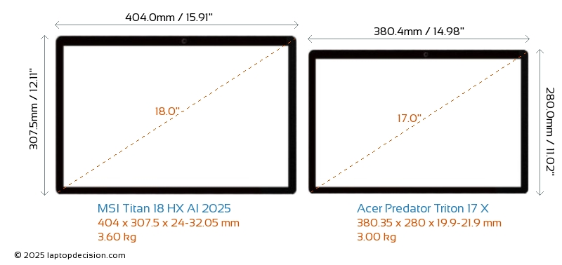 HDMIBoth Titan 18 HX AI 2025 and Predator Triton 17 X feature an HDMI port (1x HDMI 2.1) for connecting to external monitors.