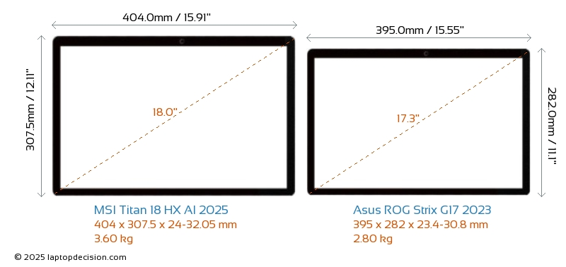 HDMIBoth Titan 18 HX AI 2025 and ROG Strix G17 2023 feature an HDMI port (1x HDMI 2.1) for connecting to external monitors.