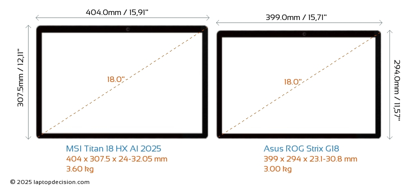 HDMIBoth Titan 18 HX AI 2025 and ROG Strix G18 feature an HDMI port (1x HDMI 2.1) for connecting to external monitors.