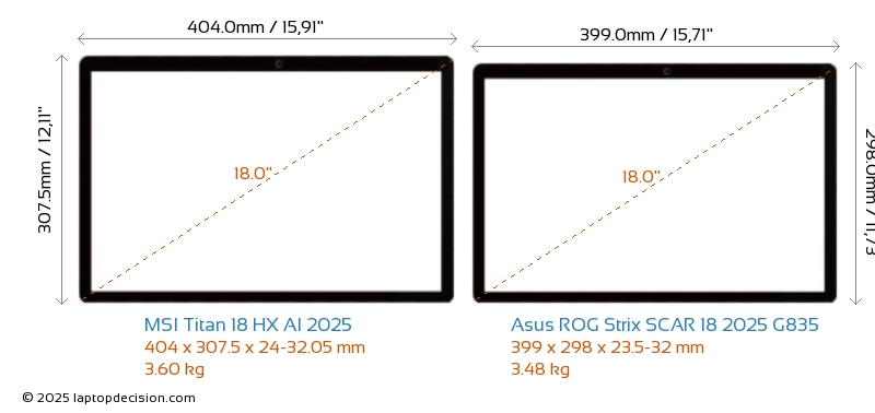USBBoth Titan 18 HX AI 2025 and ROG Strix SCAR 18 2025 G835 feature 3x USB 3.2 USB-A ports.Both Titan 18 HX AI 2025 and ROG Strix SCAR 18 2025 G835 feature 2x USB 4.0 USB Type-C ports.
