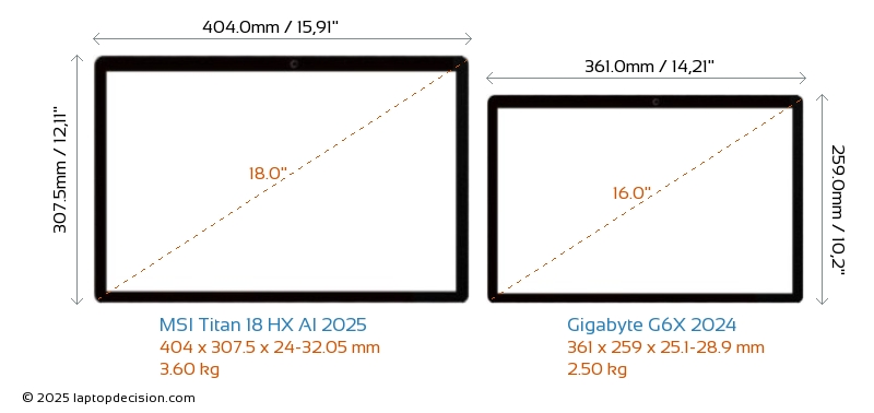 HDMIBoth Titan 18 HX AI 2025 and G6X 2024 feature an HDMI port (1x HDMI 2.1) for connecting to external monitors.