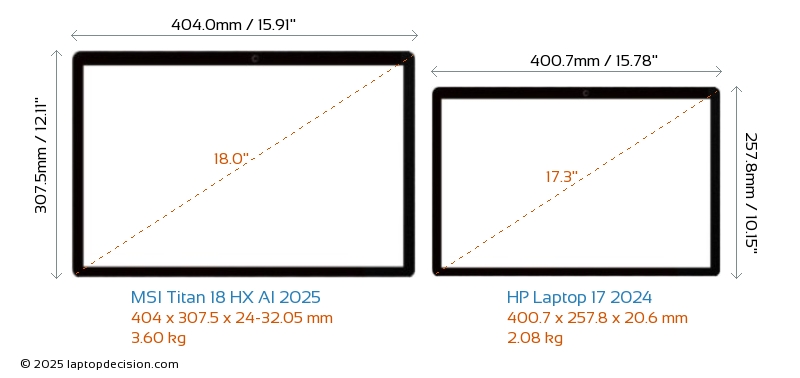 HDMIBoth Titan 18 HX AI 2025 and Laptop 17 2024 feature an HDMI port. Titan 18 HX AI 2025 offers 1x HDMI 2.1, while Laptop 17 2024 offers 1x HDMI 1.4.