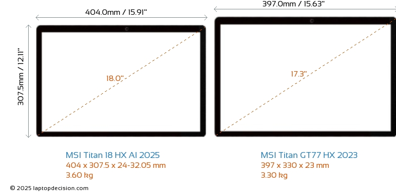 HDMIBoth Titan 18 HX AI 2025 and Titan GT77 HX 2023 feature an HDMI port (1x HDMI 2.1) for connecting to external monitors.