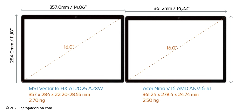 Wifi Vector 16 HX AI 2025 A2XW features a more advanced Wi-Fi standard v7, providing faster and more reliable wireless connections compared to Nitro V 16 AMD ANV16-41 (v6).