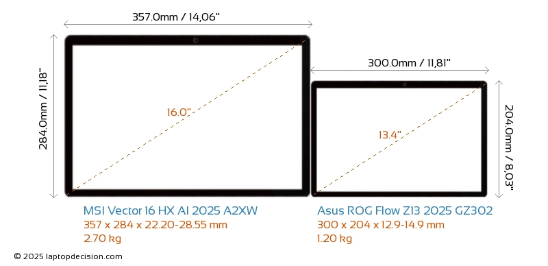 Thunderbolt Vector 16 HX AI 2025 A2XW is equipped with Thunderbolt 5 port. ROG Flow Z13 2025 GZ302 does not have Thunderbolt port.