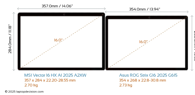 ThunderboltBoth Vector 16 HX AI 2025 A2XW and ROG Strix G16 2025 G615 are equipped with Thunderbolt 5 ports.