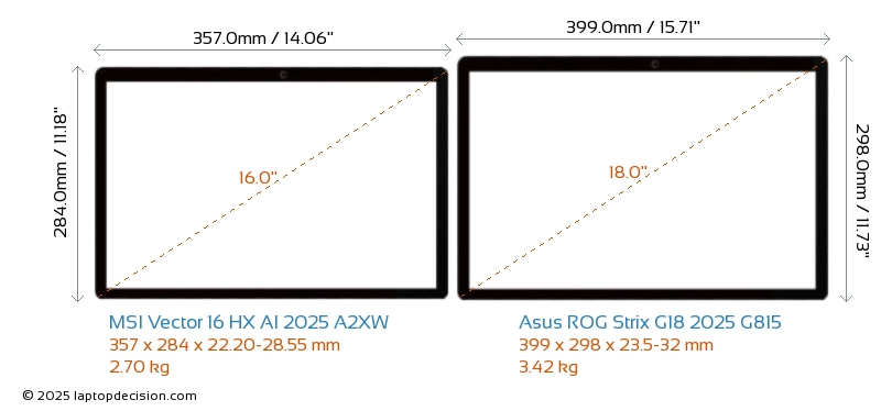 SD Card Reader Vector 16 HX AI 2025 A2XW is equipped with an SD Card Reader for easy access to memory cards. ROG Strix G18 2025 G815 does not have an SD Card Reader.