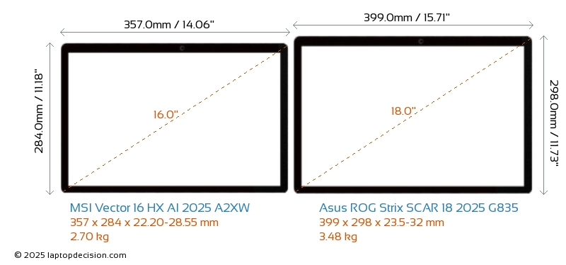 SD Card Reader Vector 16 HX AI 2025 A2XW is equipped with an SD Card Reader for easy access to memory cards. ROG Strix SCAR 18 2025 G835 does not have an SD Card Reader.