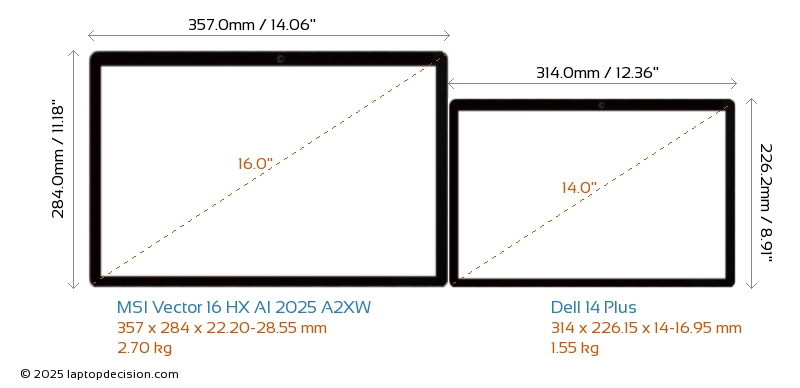 USBBoth Vector 16 HX AI 2025 A2XW and 14 Plus have USB-A ports. Vector 16 HX AI 2025 A2XW has 2x USB 3.2 USB-A ports, while 14 Plus has 1x USB 3.2 USB-A ports.Both Vector 16 HX AI 2025 A2XW and 14 Plus feature 2x USB 4.0 USB Type-C ports.