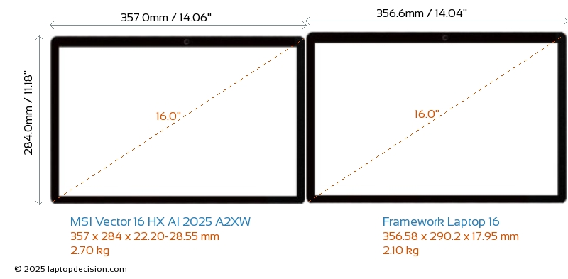HDMIBoth Vector 16 HX AI 2025 A2XW and Laptop 16 feature an HDMI port. Vector 16 HX AI 2025 A2XW offers 1x HDMI 2.1, while Laptop 16 offers 1x HDMI 2.0.