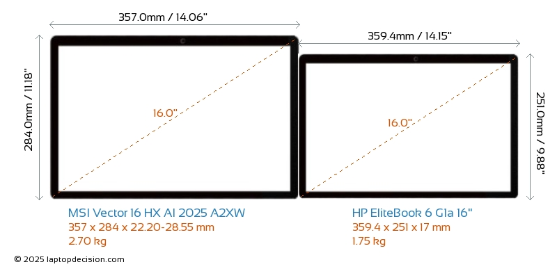 HDMIBoth Vector 16 HX AI 2025 A2XW and EliteBook 6 G1a 16" feature an HDMI port (1x HDMI 2.1) for connecting to external monitors.