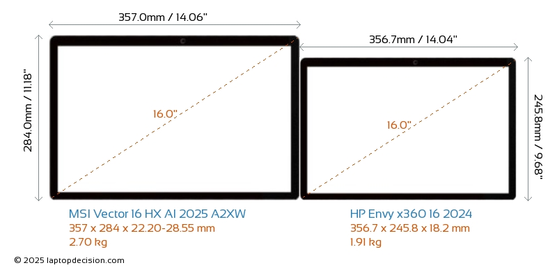 Audio JackBoth Vector 16 HX AI 2025 A2XW and Envy x360 16 2024 are equipped with a 3.5mm Audio Jack, providing seamless connection to headphones and speakers.