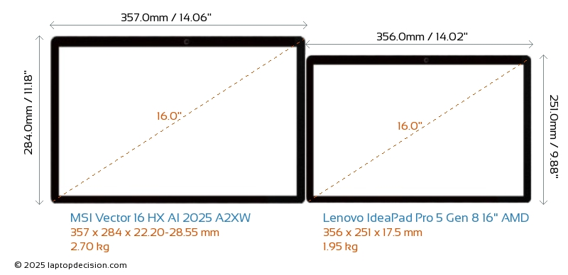Wifi Vector 16 HX AI 2025 A2XW features a more advanced Wi-Fi standard v7, providing faster and more reliable wireless connections compared to IdeaPad Pro 5 Gen 8 16" AMD (v6E).