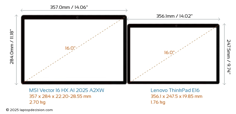 ThunderboltBoth Vector 16 HX AI 2025 A2XW and ThinkPad E16 feature Thunderbolt ports. Vector 16 HX AI 2025 A2XW has Thunderbolt 5, while ThinkPad E16 has Thunderbolt 4.
