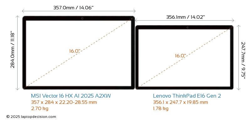 ThunderboltBoth Vector 16 HX AI 2025 A2XW and ThinkPad E16 Gen 2 feature Thunderbolt ports. Vector 16 HX AI 2025 A2XW has Thunderbolt 5, while ThinkPad E16 Gen 2 has Thunderbolt 4.