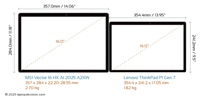 USBBoth Vector 16 HX AI 2025 A2XW and ThinkPad P1 Gen 7 have USB-A ports. Vector 16 HX AI 2025 A2XW has 2x USB 3.2 USB-A ports, while ThinkPad P1 Gen 7 has 1x USB 3.2 USB-A ports.Both Vector 16 HX AI 2025 A2XW and ThinkPad P1 Gen 7 have USB Type-C ports. Vector 16 HX AI 2025 A2XW has 2x USB 4.0 USB Type-C ports, while ThinkPad P1 Gen 7 has 3x USB 4.0 USB Type-C ports.