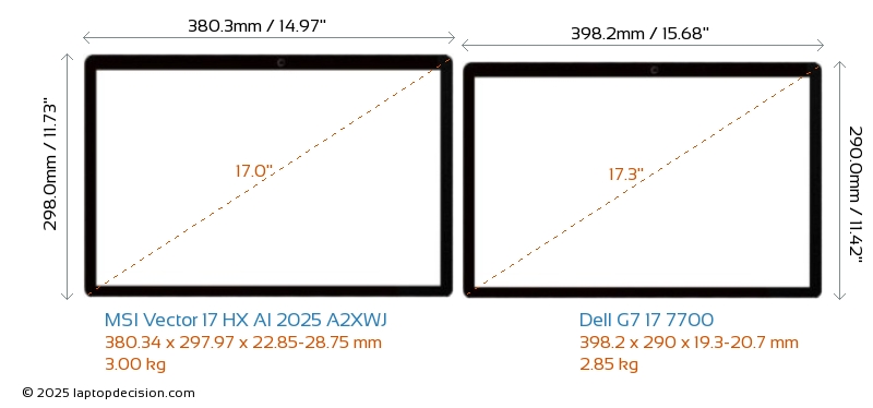 HDMIBoth Vector 17 HX AI 2025 A2XWJ and G7 17 7700 feature an HDMI port. Vector 17 HX AI 2025 A2XWJ offers 1x HDMI 2.1, while G7 17 7700 offers 1x HDMI 2.0.