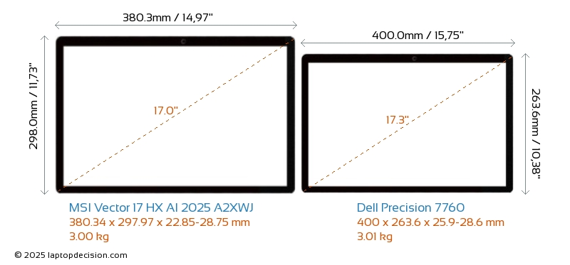 HDMIBoth Vector 17 HX AI 2025 A2XWJ and Precision 7760 feature an HDMI port (1x HDMI 2.1) for connecting to external monitors.
