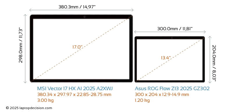 USBBoth Vector 17 HX AI 2025 A2XWJ and ROG Flow Z13 2025 GZ302 have USB-A ports. Vector 17 HX AI 2025 A2XWJ has 2x USB 3.2 USB-A ports, while ROG Flow Z13 2025 GZ302 has 1x USB 3.2 USB-A ports.Both Vector 17 HX AI 2025 A2XWJ and ROG Flow Z13 2025 GZ302 have USB Type-C ports. Vector 17 HX AI 2025 A2XWJ has 2x USB 3.2 USB Type-C ports, while ROG Flow Z13 2025 GZ302 has 2x USB 4.0 USB Type-C ports.