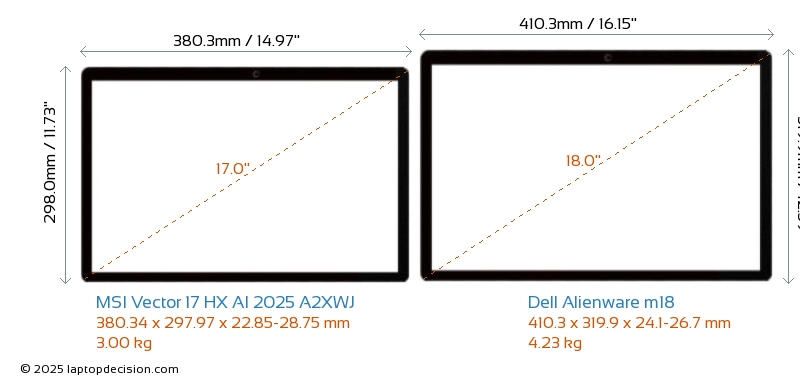 Wifi Vector 17 HX AI 2025 A2XWJ features a more advanced Wi-Fi standard v7, providing faster and more reliable wireless connections compared to Alienware m18 (v6E).