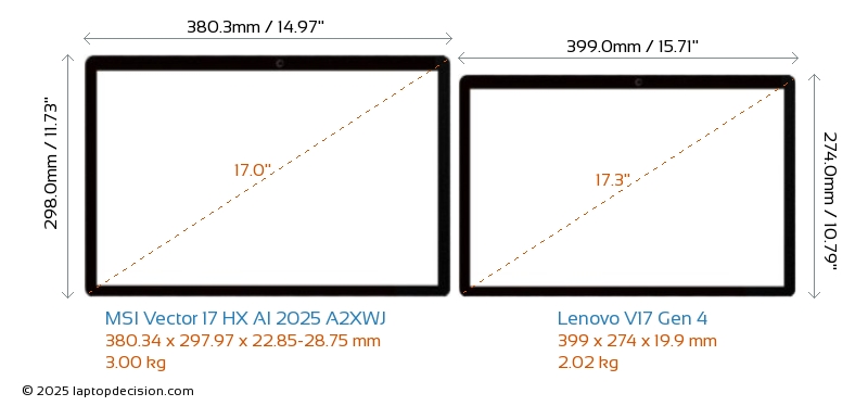HDMIBoth Vector 17 HX AI 2025 A2XWJ and V17 Gen 4 feature an HDMI port. Vector 17 HX AI 2025 A2XWJ offers 1x HDMI 2.1, while V17 Gen 4 offers 1x HDMI 1.4.