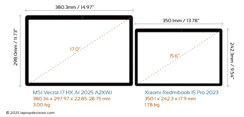 Wifi Vector 17 HX AI 2025 A2XWJ features a more advanced Wi-Fi standard v7, providing faster and more reliable wireless connections compared to Redmibook 15 Pro 2023 (v6).