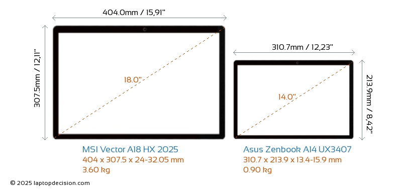 HDMIBoth Vector A18 HX 2025 and Zenbook A14 UX3407 feature an HDMI port (1x HDMI 2.1) for connecting to external monitors.