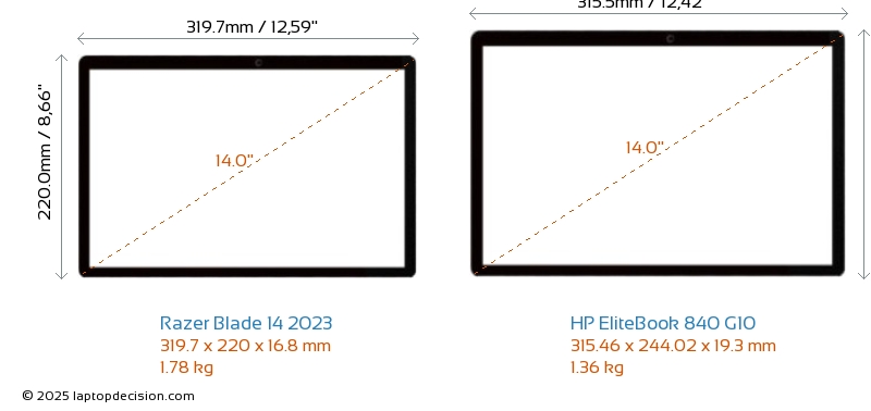 HDMIBoth Blade 14 2023 and EliteBook 840 G10 feature an HDMI port (1x HDMI 2.1) for connecting to external monitors.