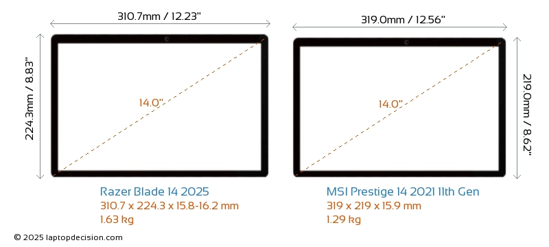 Audio JackBoth Blade 14 2025 and Prestige 14 2021 11th Gen are equipped with a 3.5mm Audio Jack, providing seamless connection to headphones and speakers.