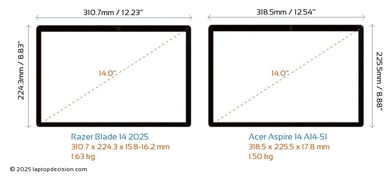 ThunderboltNeither Blade 14 2025 nor Aspire 14 A14-51 has Thunderbolt port.