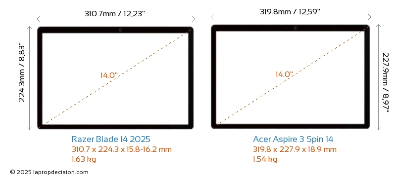 HDMIBoth Blade 14 2025 and Aspire 3 Spin 14 feature an HDMI port (1x HDMI 2.1) for connecting to external monitors.