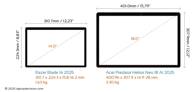 HDMIBoth Blade 14 2025 and Predator Helios Neo 18 AI 2025 feature an HDMI port (1x HDMI 2.1) for connecting to external monitors.