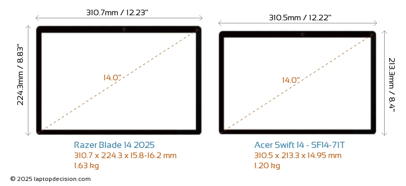 USBBoth Blade 14 2025 and Swift 14 - SF14-71T feature 2x USB 3.2 USB-A ports.Both Blade 14 2025 and Swift 14 - SF14-71T feature 2x USB 4.0 USB Type-C ports.