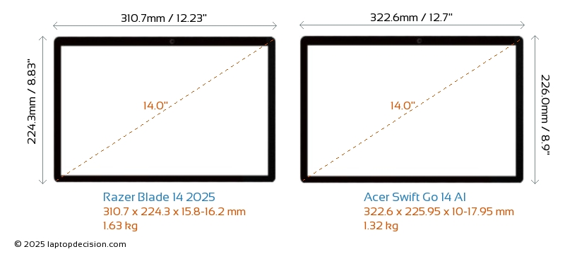 USBBoth Blade 14 2025 and Swift Go 14 AI feature 2x USB 3.2 USB-A ports.Both Blade 14 2025 and Swift Go 14 AI feature 2x USB 4.0 USB Type-C ports.
