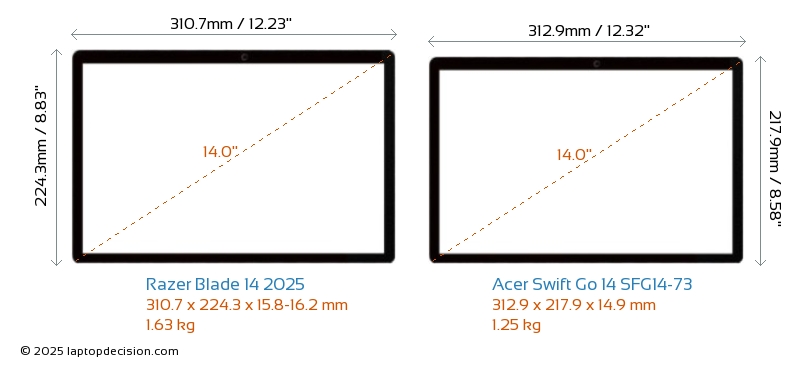 USBBoth Blade 14 2025 and Swift Go 14 SFG14-73 feature 2x USB 3.2 USB-A ports.Both Blade 14 2025 and Swift Go 14 SFG14-73 feature 2x USB 4.0 USB Type-C ports.