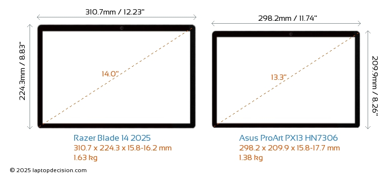 Audio JackBoth Blade 14 2025 and ProArt PX13 HN7306 are equipped with a 3.5mm Audio Jack, providing seamless connection to headphones and speakers.