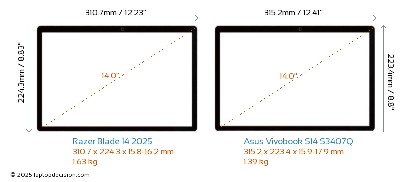 SD Card Reader Blade 14 2025 is equipped with an SD Card Reader for easy access to memory cards. Vivobook S14 S3407Q does not have an SD Card Reader.