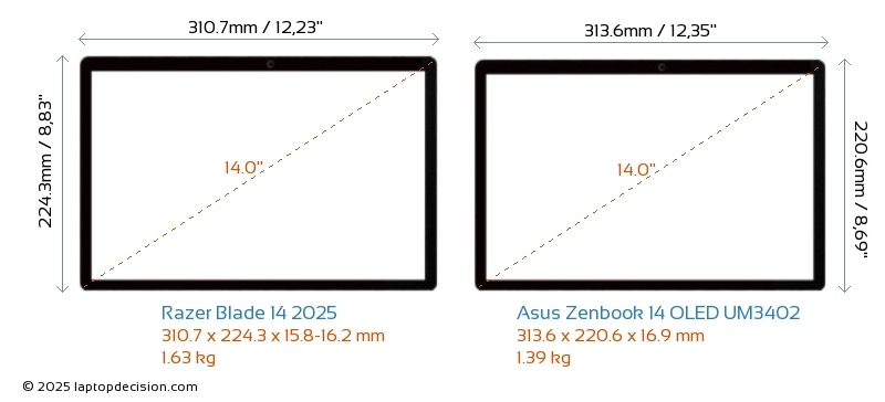 ThunderboltNeither Blade 14 2025 nor Zenbook 14 OLED UM3402 has Thunderbolt port.