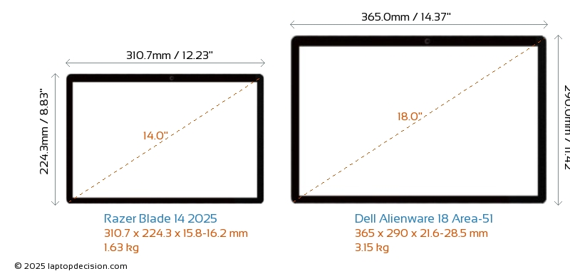 USBBoth Blade 14 2025 and Alienware 18 Area-51 have USB-A ports. Blade 14 2025 has 2x USB 3.2 USB-A ports, while Alienware 18 Area-51 has 3x USB 3.2 USB-A ports.Both Blade 14 2025 and Alienware 18 Area-51 feature 2x USB 4.0 USB Type-C ports.
